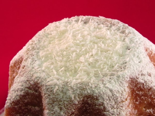 Quando il dolce si sarà raffreddato, toglietelo dallo stampo e cospargete con zucchero a velo, come vuole la tradizione, e con un po’ di cocco grattugiato, come vuole il cucchiaio giallo.