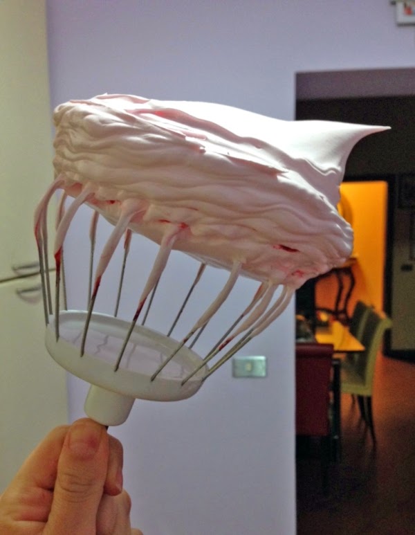 La meringa è pronta quando ha raggiunto una consistenza tale che se togliete la frusta ottenete il cosiddetto BECCO DI UCCELLO: