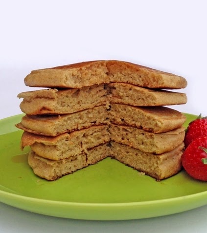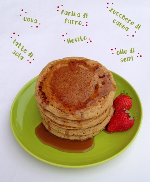 I pancakes sono venuti stupendi: soffici, dolci, con un buon sapore un po’ diverso dal solito e con quel colorito abbronzato che fa subito pensare a qualcosa di integrale e, si sa, la roba integrale fa subito salute!