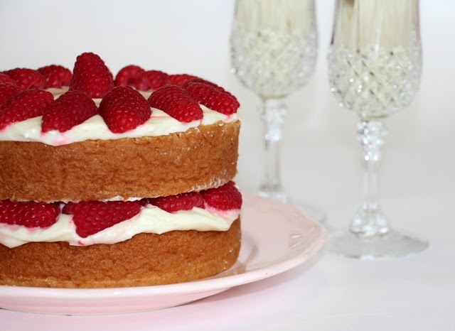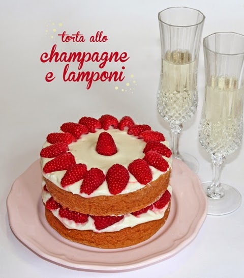 Voglio celebrare e brindare anche con voi e lo faremo come si deve, come il cucchiaio giallo comanda: con una TORTA ALLO CHAMPAGNE E LAMPONI.
